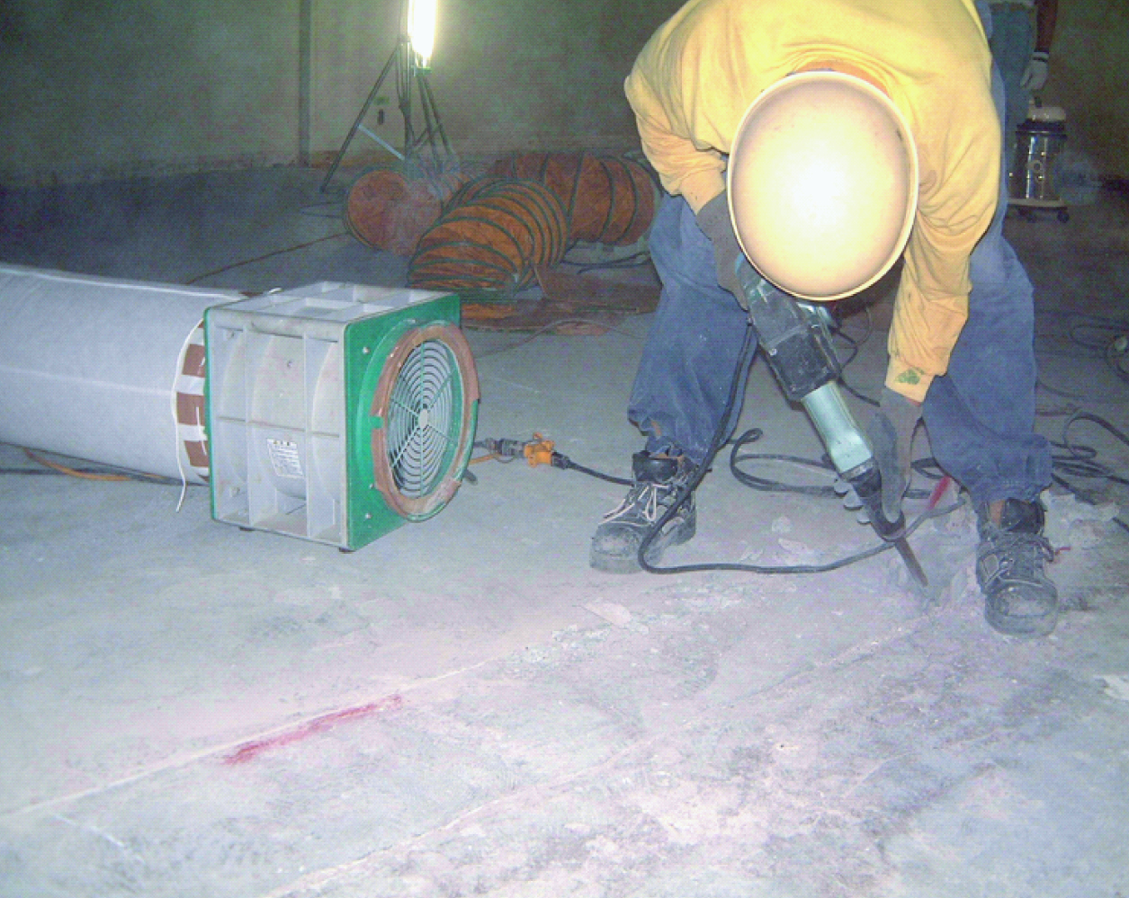健康リスクの観点から特に注意が必要な粉塵は「コンクリート粉塵」です。コンクリートを切削・研削する際に発生する粉塵には結晶性シリカ(ケイ素の小粒子)が多く含まれており、これを長期間吸入すると「珪肺症(シリコーシス)」になる可能性があります。珪肺症は肺組織を繊維化させ、呼吸困難や咳、胸痛などの症状を引き起こす重篤な肺疾患です。また、シリカ粉塵には発がん性があるとされており、将来的な肺がんの要因にもなります。したがって、コンクリート粉塵の吸引を最小限に抑えるための対策が不可欠です。