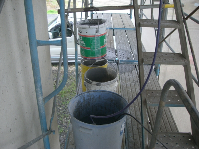水循環式無振動ドリルは、湿潤機能を備えたドリルです。ダイヤビットの回転ドリルを採用したことにより、低騒音・低振動を実現しました。粉塵の飛散を防止すると同時に、作業時の騒音と振動も抑えられるため、周囲に配慮した施工が可能です。水循環式のため、外壁を汚すこともありません。